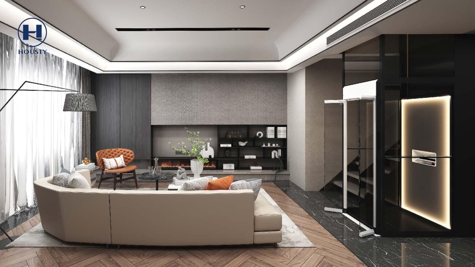 Housty亨世达家用电梯采用螺母螺杆驱动,可灵活适应不同房屋结构及安装要求,无底坑无机房,不仅可节约建筑空间,减少繁琐的土建工作,亦可减少安装成本。无论有无预留电梯井道均可安装。Housty亨世达家用电梯有11种常用尺寸可选,基本可以覆盖大部分业主的定制化需求。